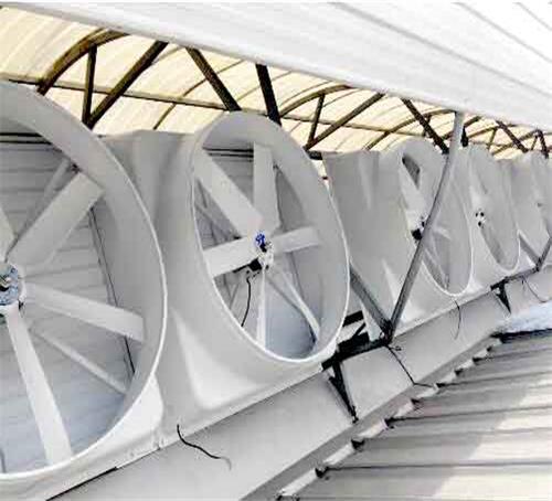 上海大型鋼結構廠房氣樓安裝玻璃鋼屋頂風機也可以說是屋頂抽風機及屋面風機因為安裝在屋頂同樣是屋面的一種通風降溫解決方案蘇州速吉通風降溫設備廠家給說方案說明屋頂風機運用在鋼結構廠房氣樓屋面風機產生負壓通風降溫工程